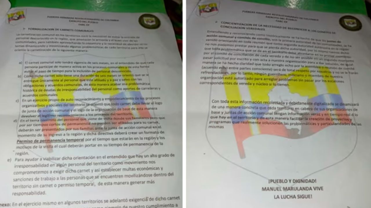 Las disidencias de las FARC que operan en Caquetá, Colombia, están distribuyendo cartillas con instrucciones y normas que los pobladores de la zona deben cumplir.