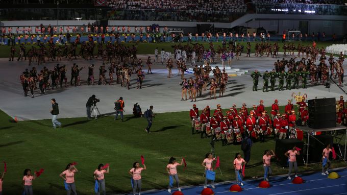 El preámbulo al evento central fue la presentación de la danza boliviana de los caporales y la interpretación de una canción regional de Cochabamba, para dar paso luego al desfile de las delegaciones de los 14 países suramericanos participantes.