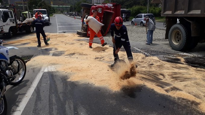 Reducida se encuentra la movilidad en la avenida Regional a la altura de la glorieta de Niquía debido al volcamiento de un vehículo.