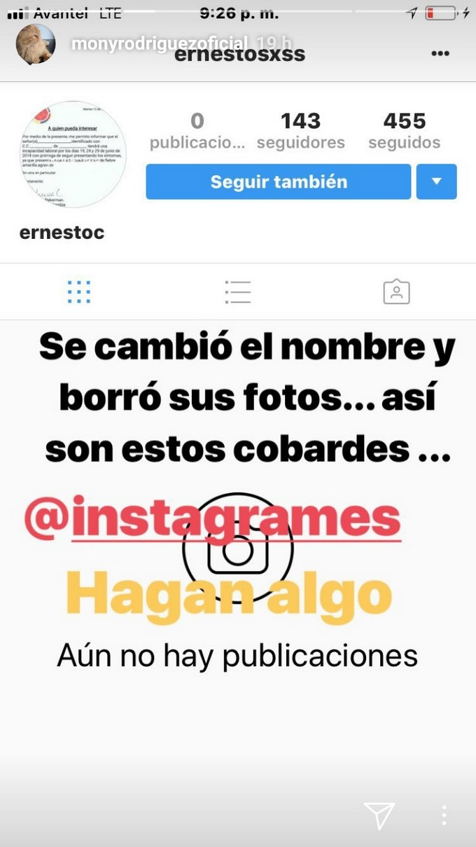 Mónica reveló que el usuario enviaba fotos desnudo “por privado”, identificado como Andrés Urieles: @andresurielesjv.