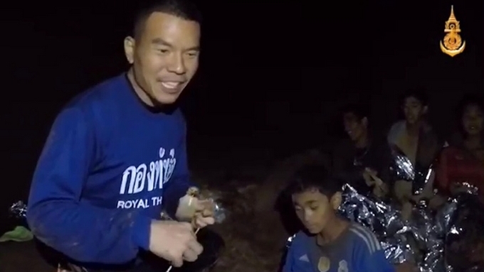 En el video se observa a los chicos cuyas edades varían entre los 11 y 16 años, calmados y abrigados con mantas térmicas, incluso sonrientes pese a estar atrapados bajo tierra.
