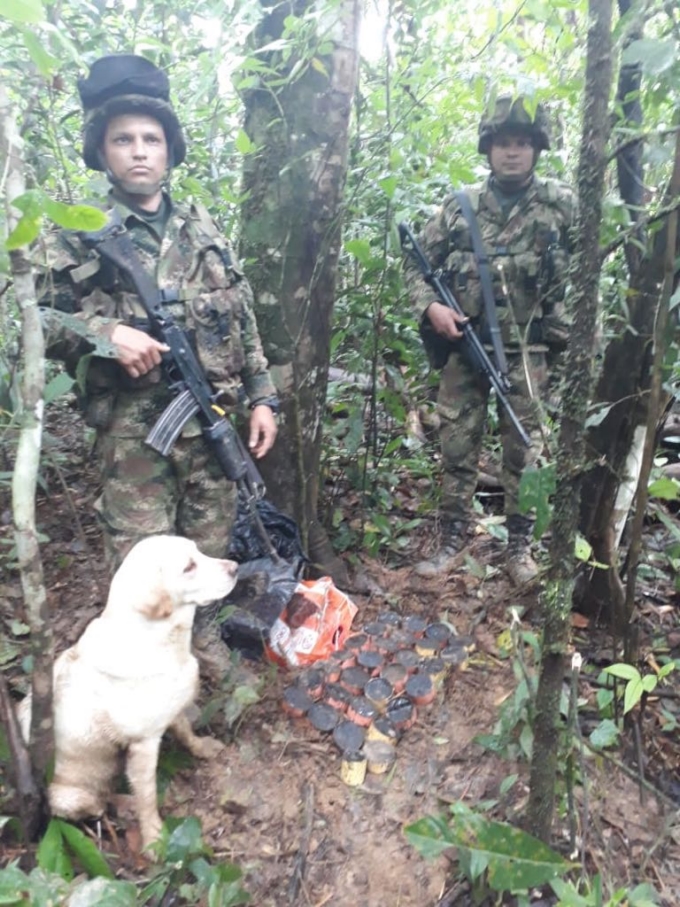 El material fue hallado en un área boscosa, envuelto en una lona blanca e impermeabilizados con plástico negro por tropas del Batallón de Infantería N° 29 General Gustavo Ocampo Herrera, adscrito a la Séptima Brigada, en desarrollo de la operación ‘Dinastía’.