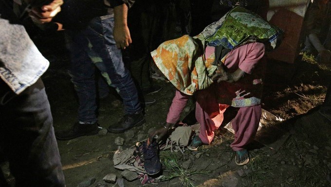 Una mujer recoge el zapato de una víctima de un accidente de tren mientras busca a su hijo.