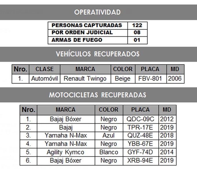 Un automóvil Twingo y seis motocicletas fueron recuperadas en las últimas horas por la policía metropolitana.