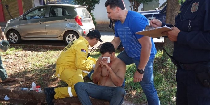 Un hombre de nacionalidad brasileña, identificado como Ugo Leonardo Da Costa Jardim de 34 años, aparentemente bajo los efectos de alguna droga, se desnudó e intentó sacar sus ojos, pero como no consiguió sacárselo, se dispuso a “atacar” sus genitales en plena vía del centro de Ciudad del Este, Paraguay.