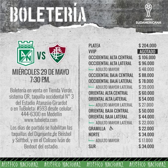 Minuto30.com- Atlético Nacional abrió la recarga de abonos y la venta de boletería para el partido de vuelta de la segunda fase de la Copa Sudamericana, ante Independiente.
