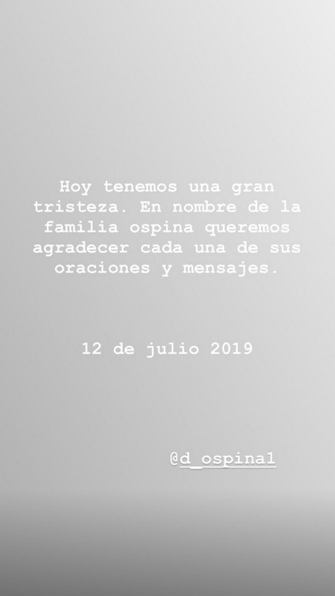 A través de las historias de Instagram, Daniela publicó el siguiente texto: “Hoy tenemos una gran tristeza. En nombre de la familia Ospina queremos agradecer cada una de sus oraciones y mensajes”. El presidente Iván Duque y el equipo en el que juega David, el Napoli de Italia, también extendieron sus condolencias.
