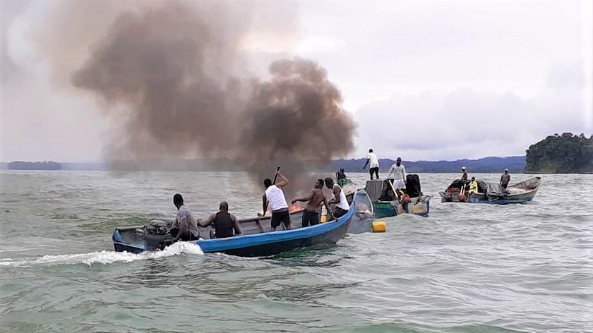 Los hechos se produjeron en el sector El Tigre, en la Bahía de Buenaventura, cuando al parecer dos pescadores artesanales se encontraban preparando unos alimentos dentro de la embarcación, el brusco movimiento de una ola habría provocado que un tanque de combustible cayera sobre la estufa, lo que produjo la conflagración que afortunadamente no dejó heridos, ni pérdidas humanas.