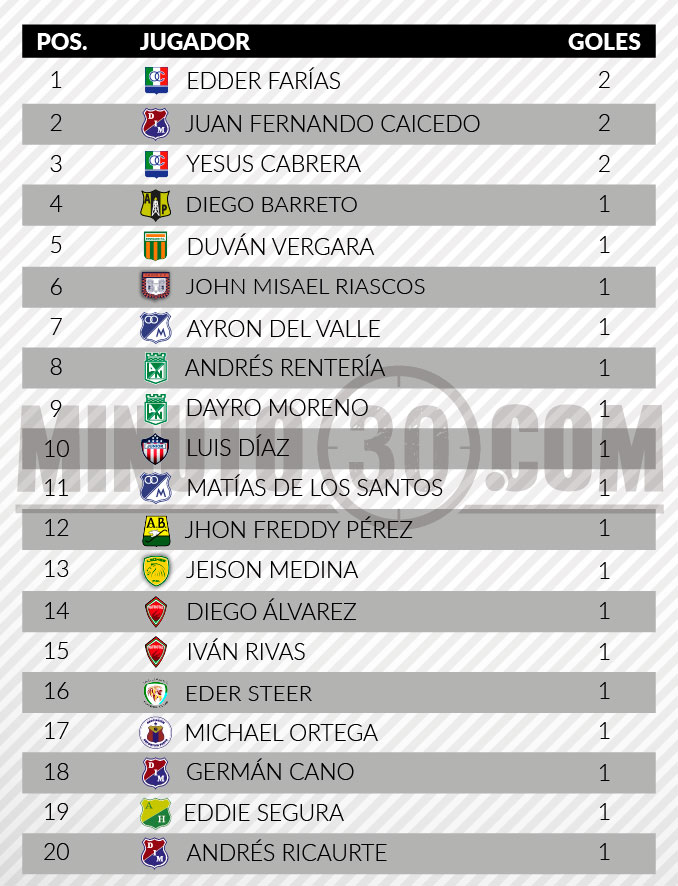 Minuto30.com- Juan Fernando Caicedo comenzó con doblete la Liga Águila I-2018, pero en la segunda jornada se fue en blanco y por ende le llegó compañía.