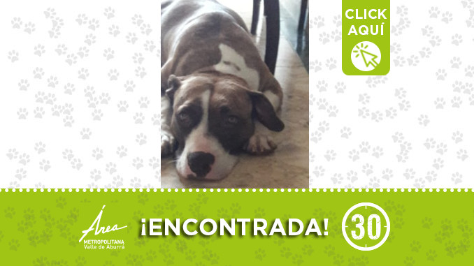 Esta perrita fue encontrada por el barrio Villas del Sol en Bello. Si usted la reconoce o sabe de sus dueños por favor llamar al 312 8756138. ¡Difunde!