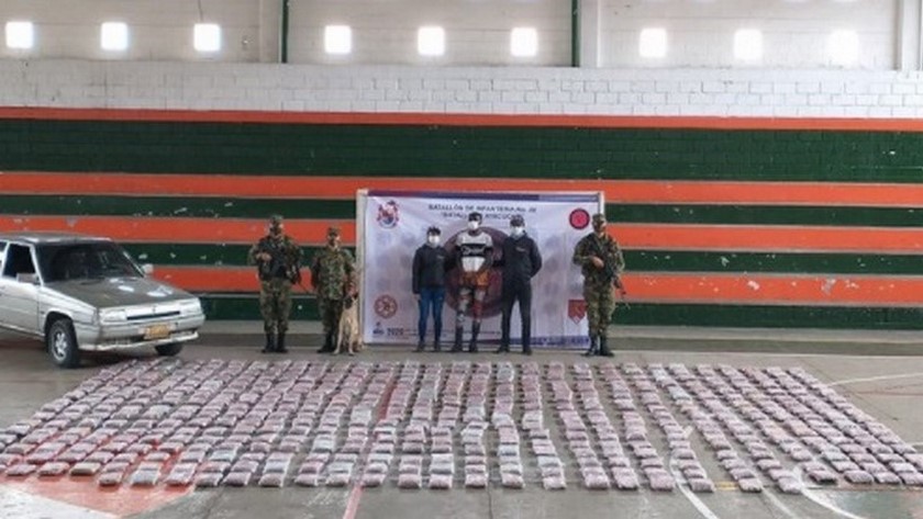 En vía pública los servidores de la policía judicial inspeccionaron el vehículo en el cual encontraron 500 paquetes de forma rectangular cubiertos con cinta adhesiva con 250 kilos de marihuana.