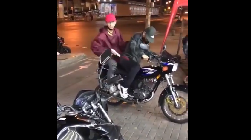 En el video que fue difundido en redes sociales se observan los segundos en los que dos jóvenes armados se suben a una motocicleta e intentar llevársela, sin embargo, esta no les enciende.