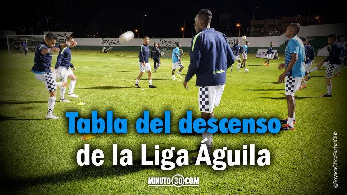 Minuto30.com- Leones Itagüí y Boyacá Chicó cada vez tienen menos posibilidades de mantenerse en la primera división del fútbol profesional colombiano. El conjunto antioqueño es último en la tabla del descenso con 109 puntos, mientras que el equipo boyacense ocupa la penúltima plaza, con 1118. De mantenerse en esta plazas, ambos perderán la categoría al […]