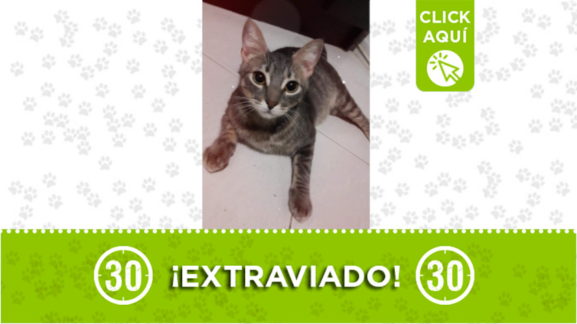 Este gatico se perdió en el barrio Pedregal.