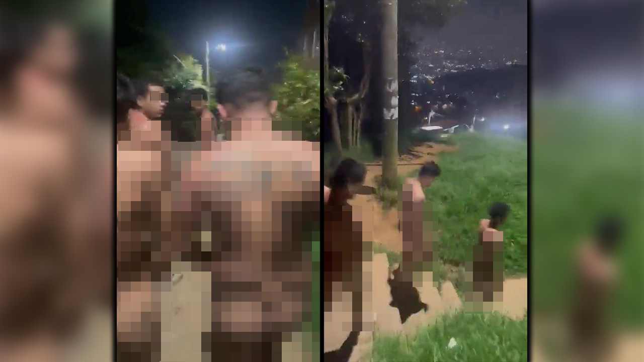 En video quedó registrado cuando, en medio de ‘fuetazos’, los sujetos bajaban unas escaleras, completamente desnudos y en el frío de la noche, narrando lo que presuntamente fueron a hacer a la zona.