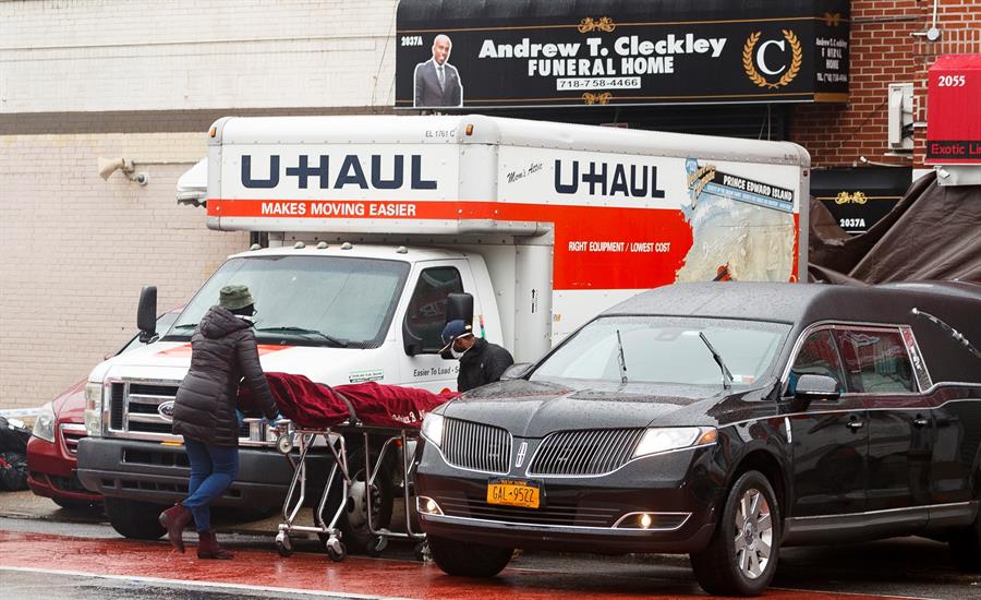 La Policía de Nueva York, tras recibir llamadas de vecinos advirtiendo del mal olor, descubrió este miércoles alrededor de medio centenar de cuerpos almacenados en camiones de la cadena U-Haul, normalmente alquilados por horas para mudanzas, y sobre el suelo de la funeraria, con algunos cadáveres en estado de descomposición.