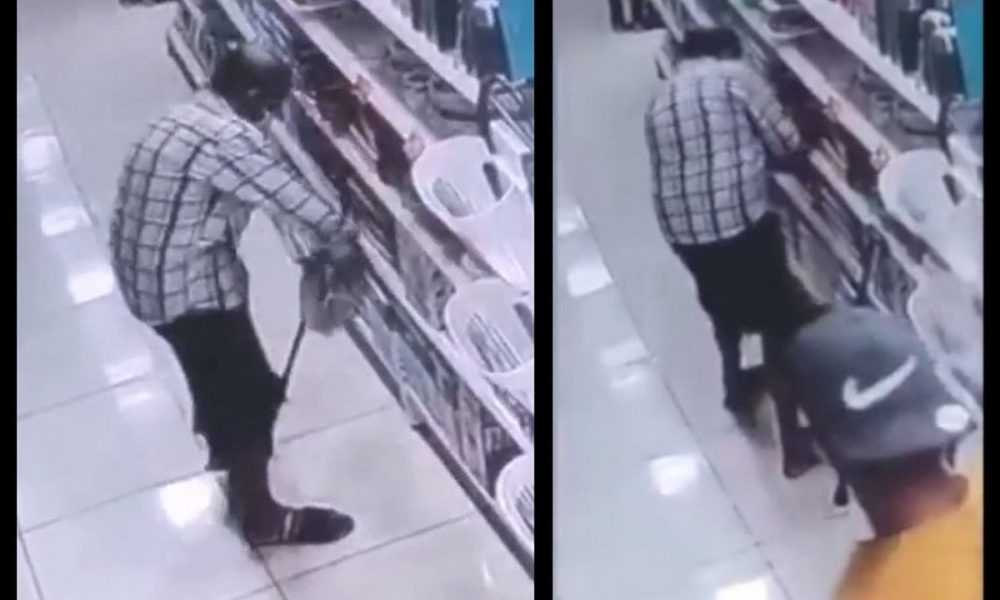 En la grabación se ve como la mujer camina con bastón a un lado, toma una olla para luego guardarla dentro de su falda, pero se desconoce si la mujer tenía algún cómplice dentro de la tienda.
