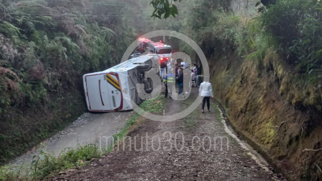 En la madrugada del 9 de abril, se volcó un bus de servicios especiales en la vereda La Asunción, Marinilla.