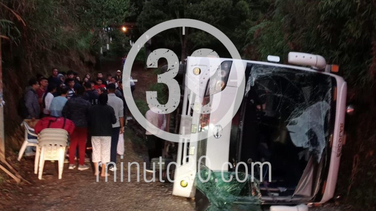 El suceso se dio cuando el bus se encontraba de regreso con pasajeros de una celebración religiosa, lamentablemente, el bus se volcó en la vía.