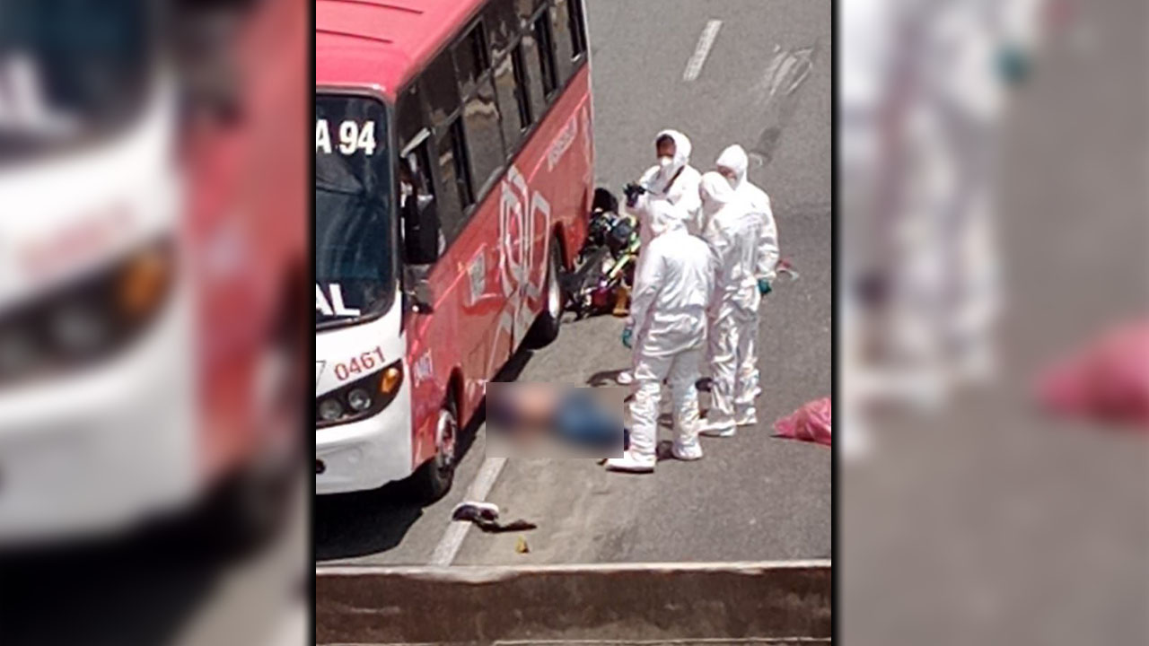 Este accidente de transito se dio en frente de la Secretaria de Movilidad, sobre las 10:30 de la mañana, entre una volqueta, un bus y una moto, quedando sin vida quien conducía la moto.