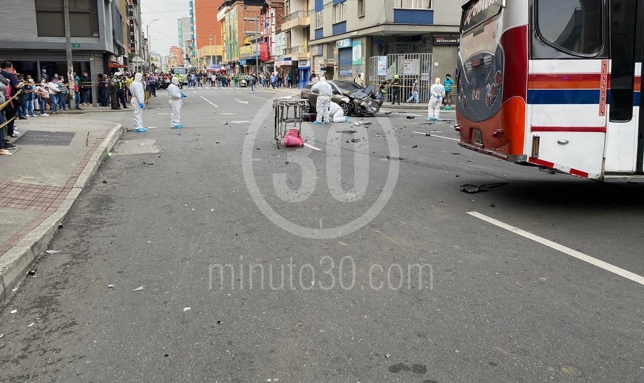 Al parecer, el carro no frenó y se llevó por delante al vigilante una cuadra más arriba, por lo que un bus que venía, terminó chocando contra el vehículo, dejando al hombre de seguridad muerto en plena vía pública.