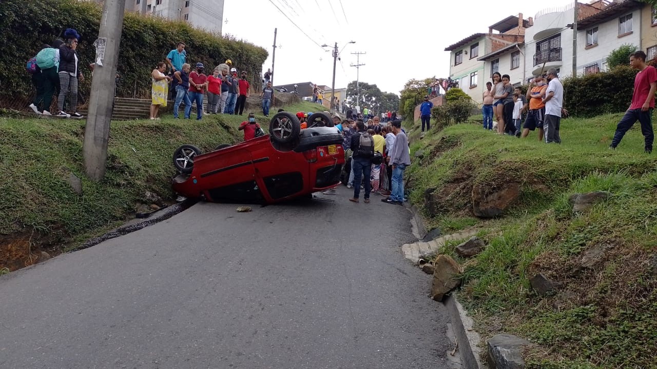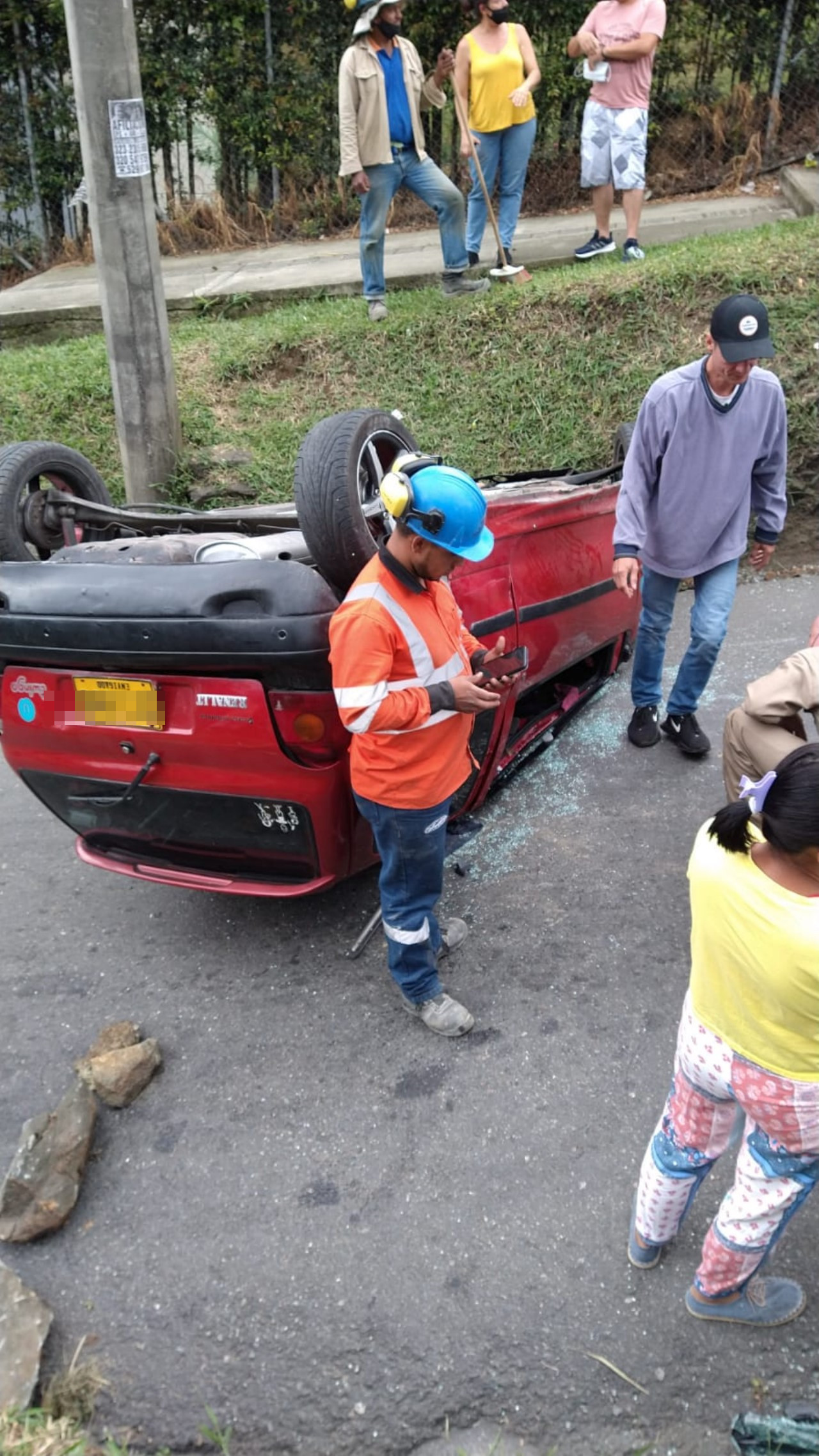 De acuerdo con la denuncia ciudadana el carro de color rojo quedó con las llantas arriba luego de que perdiera el control. Al parecer, dentro del vechiculo iban menores de edad y una de las ocupantes habría quedado gravemente herida.