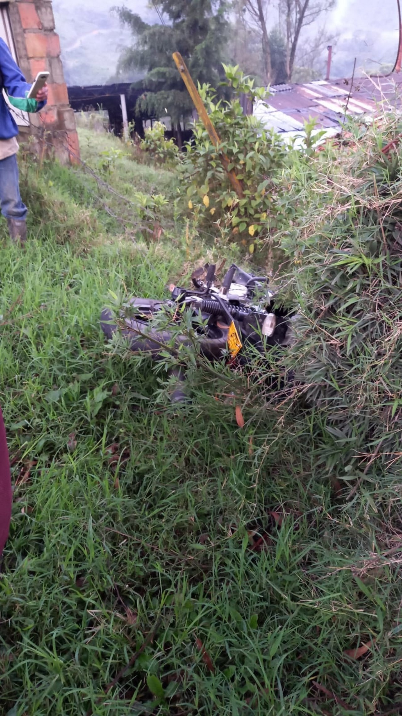 Debido al fuerte impacto, la motocicleta quedó en zona verde, por fuera de la carretera.