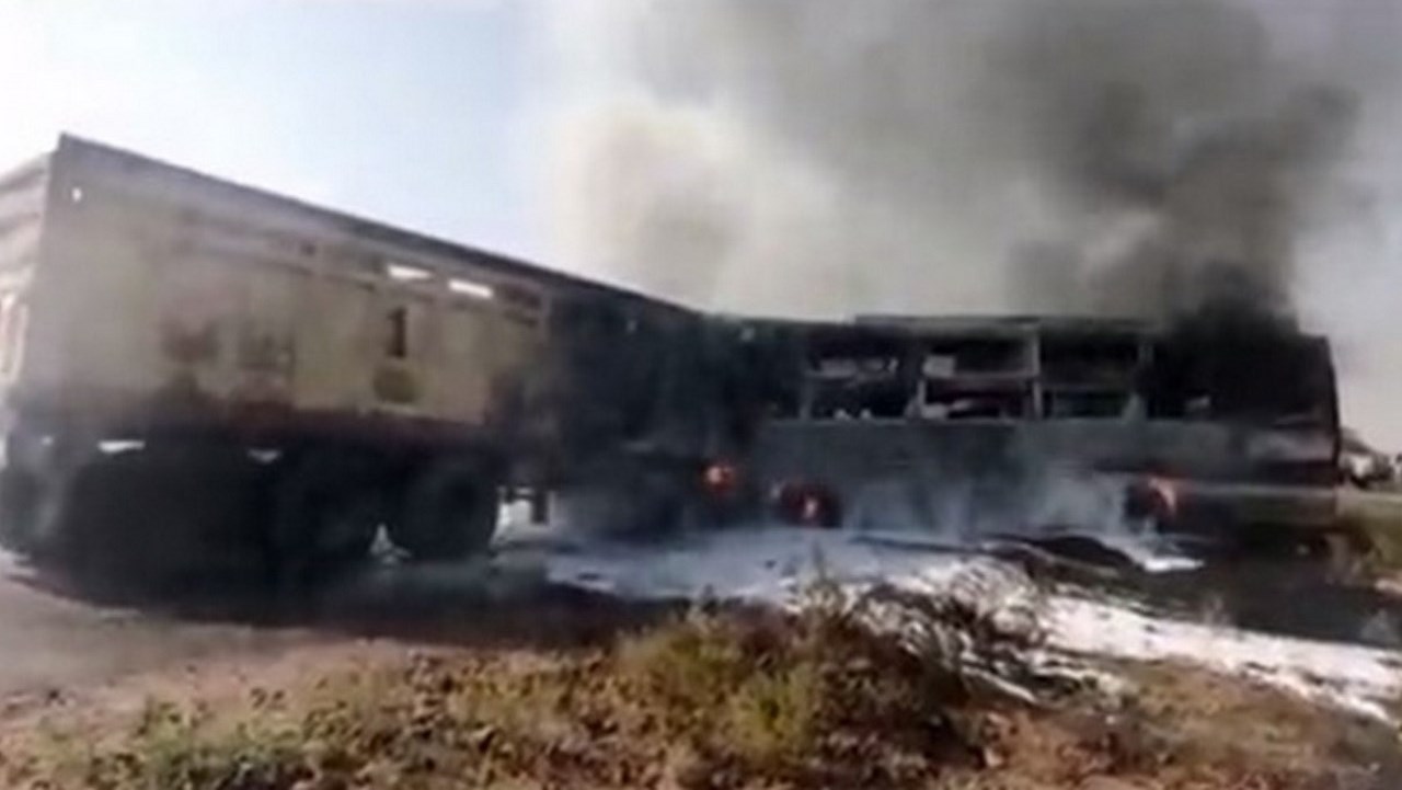 De acuerdo con medios locales, ambos vehículos se incendiaron después de choque dejando el bus totalmente carbonizado.