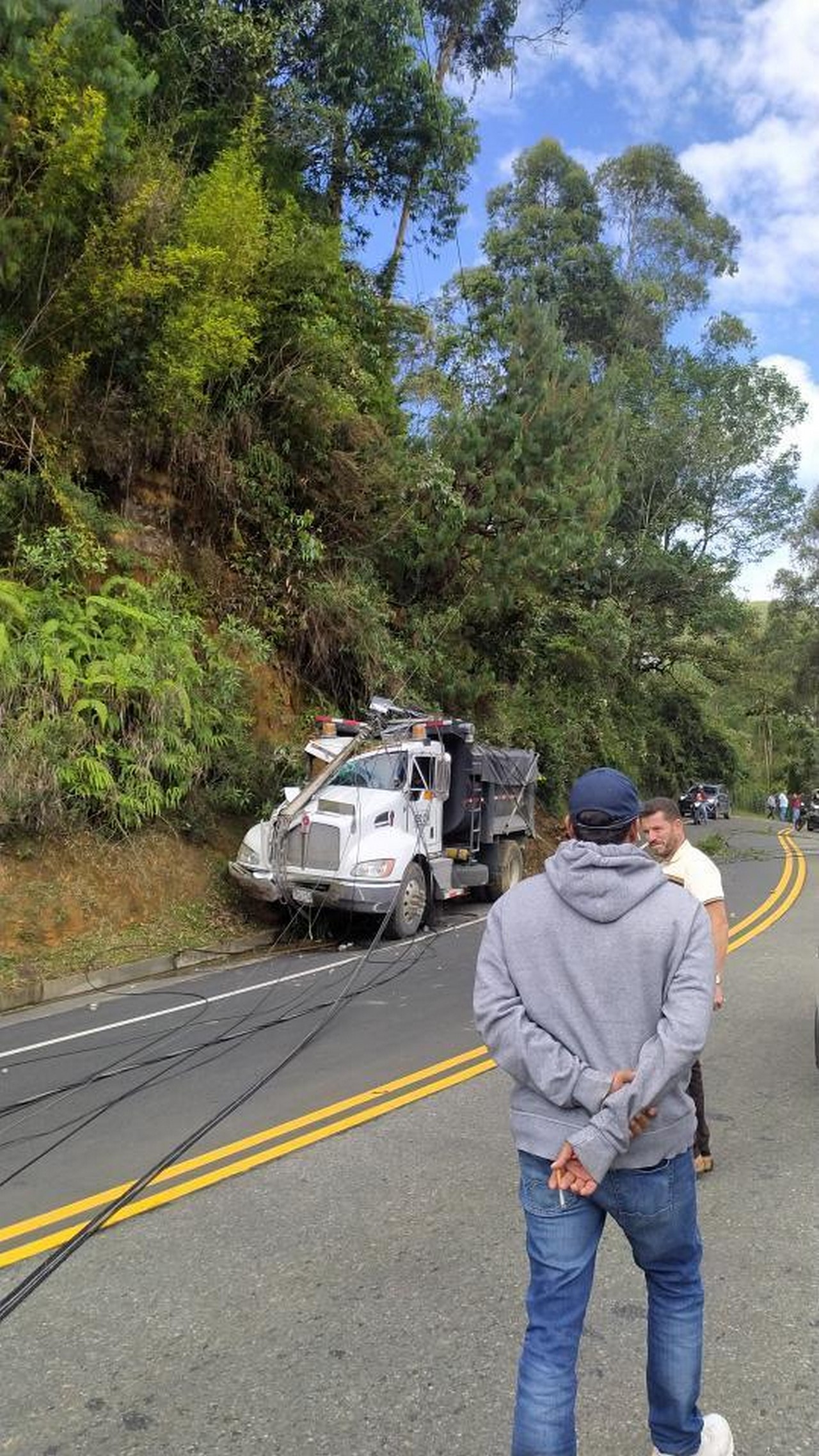 Accidente de tránsito vía las Palmas – el retiro a la altura via don Diego Carrizales. Volqueta se queda sin frenos y se lleva un poste de luz. Nos reportan varios lesionados. Kilómetro 23. @TransitoPolicia @Policiantioquia pic.twitter.com/NCJ39ugdvv