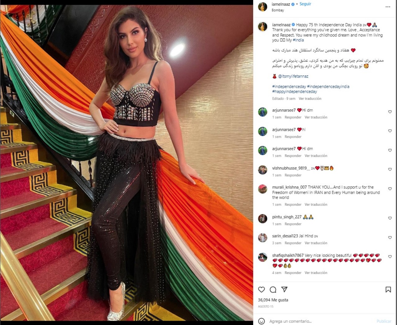 Elnaaz publicó en sus redes sociales un video en el que se desnuda para apoyar la libre elección de las mujeres de vestirse como ellas decidan, en el marco de las protestas que están sucediendo en el país luego de la muerte de la Mahsa Amini.