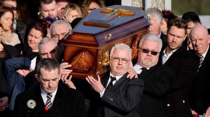 El servicio religioso estuvo oficiado por McNamara, amigo personal de la familia O’Riordan, por el párroco de Ballybricken, James Walton, y por el arzobispo Kieran O’Reilly, de la archidiócesis de Cashel y Emly.