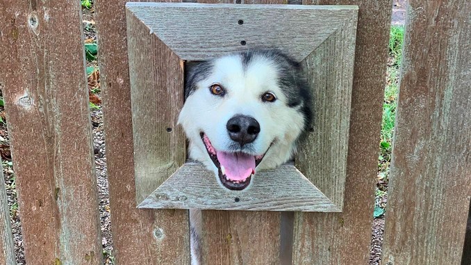 Julie Weatherbee de Ann Arbor, Michigan, compartió una imagen en su cuenta de Twitter que al instante se volvió viral, en esta se ve a la perrita de su vecino asomando la cabeza por un agujero hecho en la cerca para que la mascota pueda saludar a los que pasan.