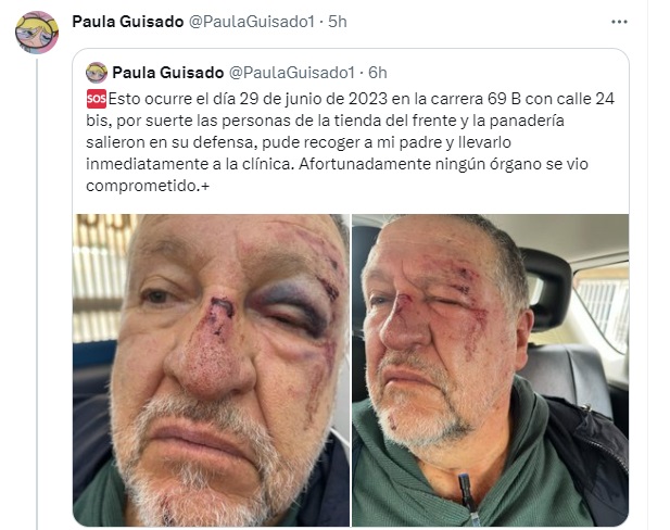 “¿Qué se tiene en la cabeza cuando se reacciona de esa manera tan agresiva y criminal con otro ? ¿Puede andar una persona mayor tranquila por las calles de la ciudad y su barrio? Se busca al señor de rojo para que responda por los daños causados.” Escribe la hija del señor agredido.