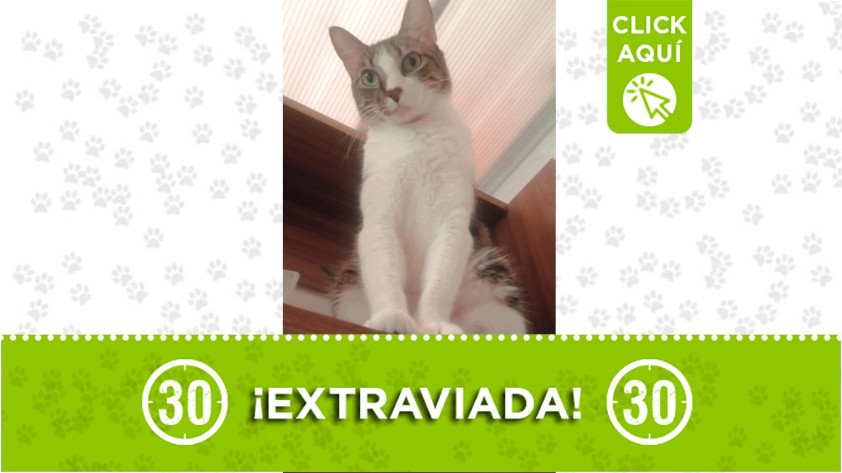 Esta bella gata está perdida desde el sábado 29 de abril.