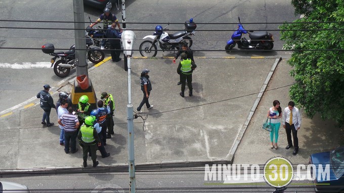 Minuto30.com.- En plena Avenida El Poblado se presentó un altercado entre un motociclista y un Agente de Tránsito que causó una gran congestión vehicular.