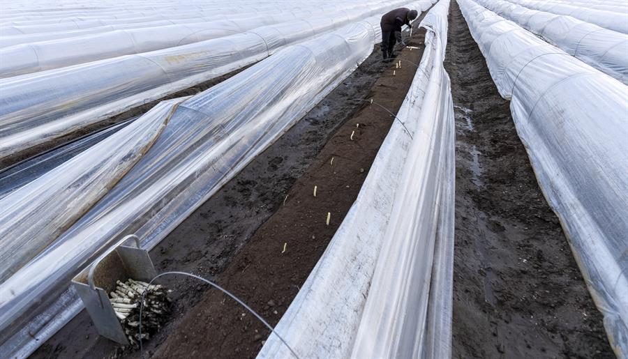 La cosecha de espárragos ya ha comenzado en algunos lugares del país, adelantada por las temperaturas suaves del invierno, lo que dio la alerta acerca de las dificultades que puede tener que afrontar la agricultura como consecuencia del coronavirus.