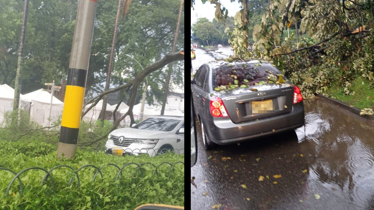 En medio del aguacero un árbol cayó encima de un carro por el Puente de la 4 Sur