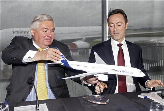 El jefe comercial de Airbus, John Leahy, y el presidente de Airbus, Fabrice Brégier. EFE