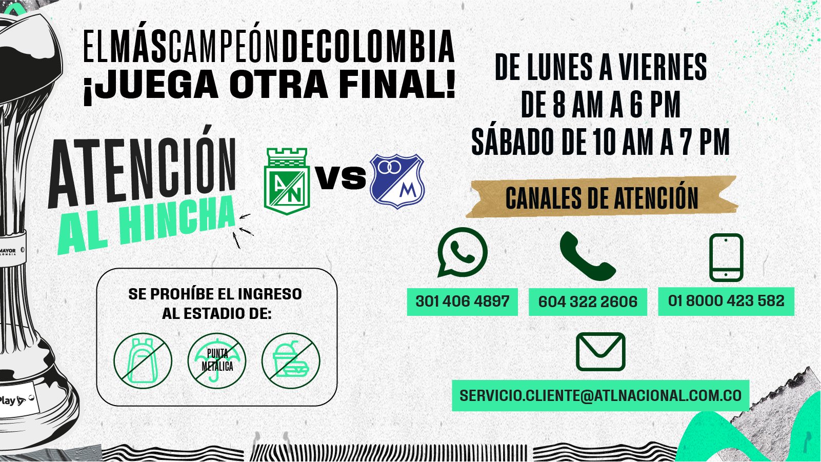 Atlético Nacional, luego de confirmar que todas las localidades fueron vendidas, es decir, que el lleno del estadio Atanasio Girardot está repleto, entregó recomendaciones para el ingreso con normalidad al escenario.