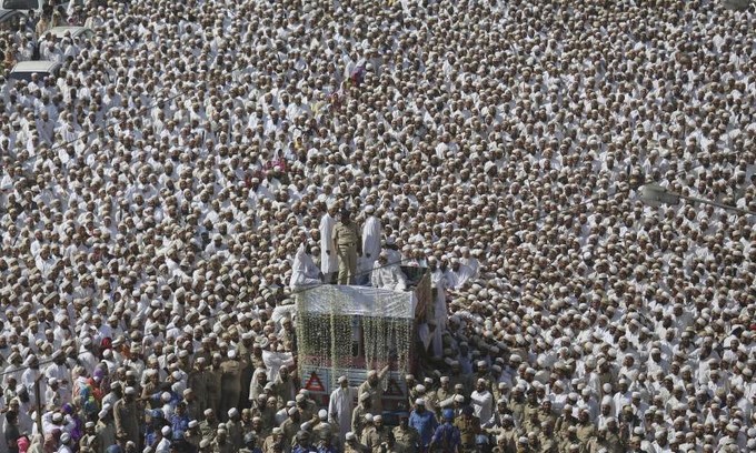La avalancha se produjo después de que miles de fieles se agolparan ante el edificio donde se había depositado el cadáver del santón Syedna Mohamed Burhanuddin, que falleció ayer, para que sus seguidores pudieran rendirle un último homenaje.