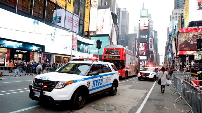 La Policía patrulla durante los preparativos para fin de año en Times Square en Nueva York (EE.UU.)