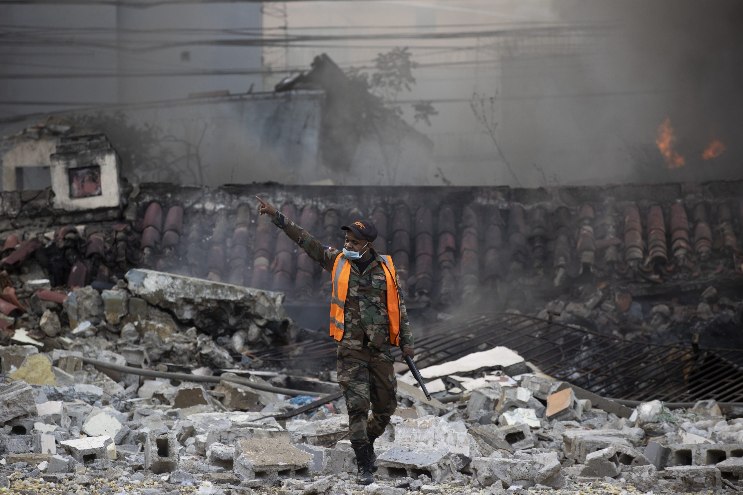 Los cuerpos permanecían en un área cercana al lugar del estallido y las llamas, que destruyeron varios locales comerciales, incluido el de un banco de capital canadiense, así como automóviles, constató la Agencia EFE.