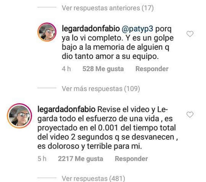 La publicación posteriormente fue eliminada pero estuvo en línea el tiempo suficiente para que las personas pudieran preguntarle por qué tenía esta opinión y respondió abiertamente: “porque yo lo vi completo, y es un golpe bajo a la memoria de alguien que dio tanto amor a su equipo”.