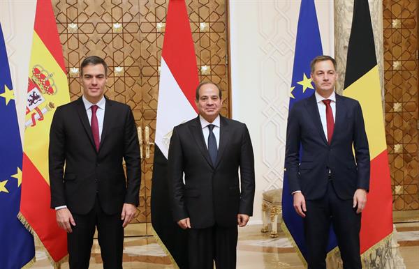 "Hablamos hoy de una tregua temporal de cuatro días y esperemos que se extienda para la entrega de más rehenes y prisioneros (…) y también para la entrega de más ayudas. Necesitamos ayudas suficientes para suministrar a 2.3 millones de personas que necesitan de todo, agua, alimentos, medicinas, debido al asedio impuesto desde el 7 octubre hasta ahora", dijo en un discurso junto al presidente del Gobierno español, Pedro Sánchez, y el primer ministro belga, Alexander de Croo, en El Cairo.