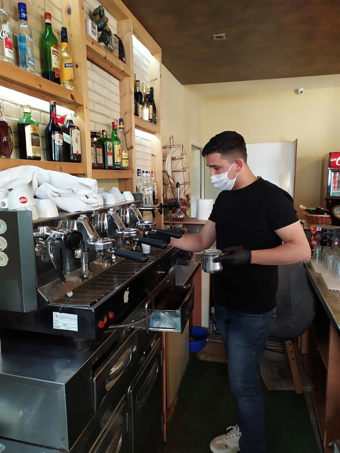“He tratado de respetar con pulcritud las normas requeridas, aunque no las tengo todas claras. Servimos solo en la terraza y no dentro, como prevé la ley, por lo que estamos funcionando con la mitad de la capacidad de antes”, señala Kujtim.