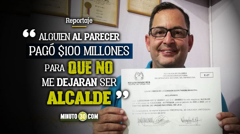 Luego de que una medida provisional le impidiera a Leiderman Ortiz posesionarse como nuevo mandatario de Caucasia, el alcalde electo tomó cartas en el asunto y además formuló una grave denuncia, pues le aseguró a este medio que falsificaron su firma para endilgarle un contrato que lo inhabilitaría, y además reveló que al parecer la persona que formuló dicha denuncia recibió 100 millones de pesos para impedir que este pueda gobernar.