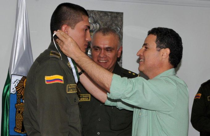 El Alcalde de Medellín, Aníbal Gaviria Correa condecoró al Auxiliar Bachiller de la Policía, Luis Alfonso Ramírez Ramírez, quien en acto heroico, salvó la vida de un hombre, quien intentó saltar a las vías del metro de Medellín .