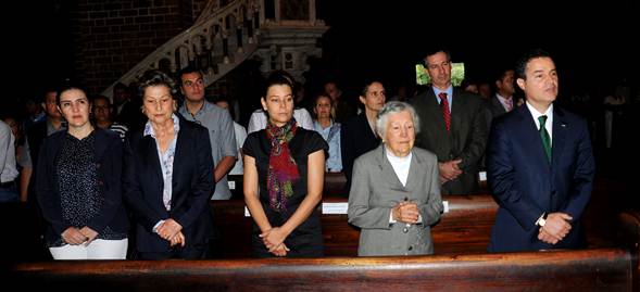 En compañía de su familia y de la familia Echeverri Pérez, el Alcalde de Medellín, Aníbal Gaviria Correa, participó, el viernes, 4 de mayo, en la Catedral Basílica Metropolitana,  de la eucaristía  con la que se conmemoraron los 9 años del fallecimiento del ex gobernador de Antioquia, Guillermo Gaviria Correa, y del ex asesor de paz, Gilberto Echeverri Mejía, junto con 8 soldados de la patria.