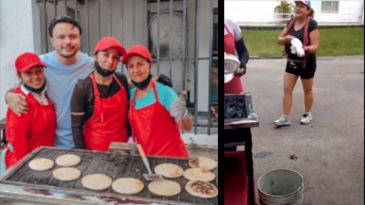 En un video que se hizo viral en redes sociales se ve a la mujer que arrojó los excrementos en el puesto de venta de arepas.