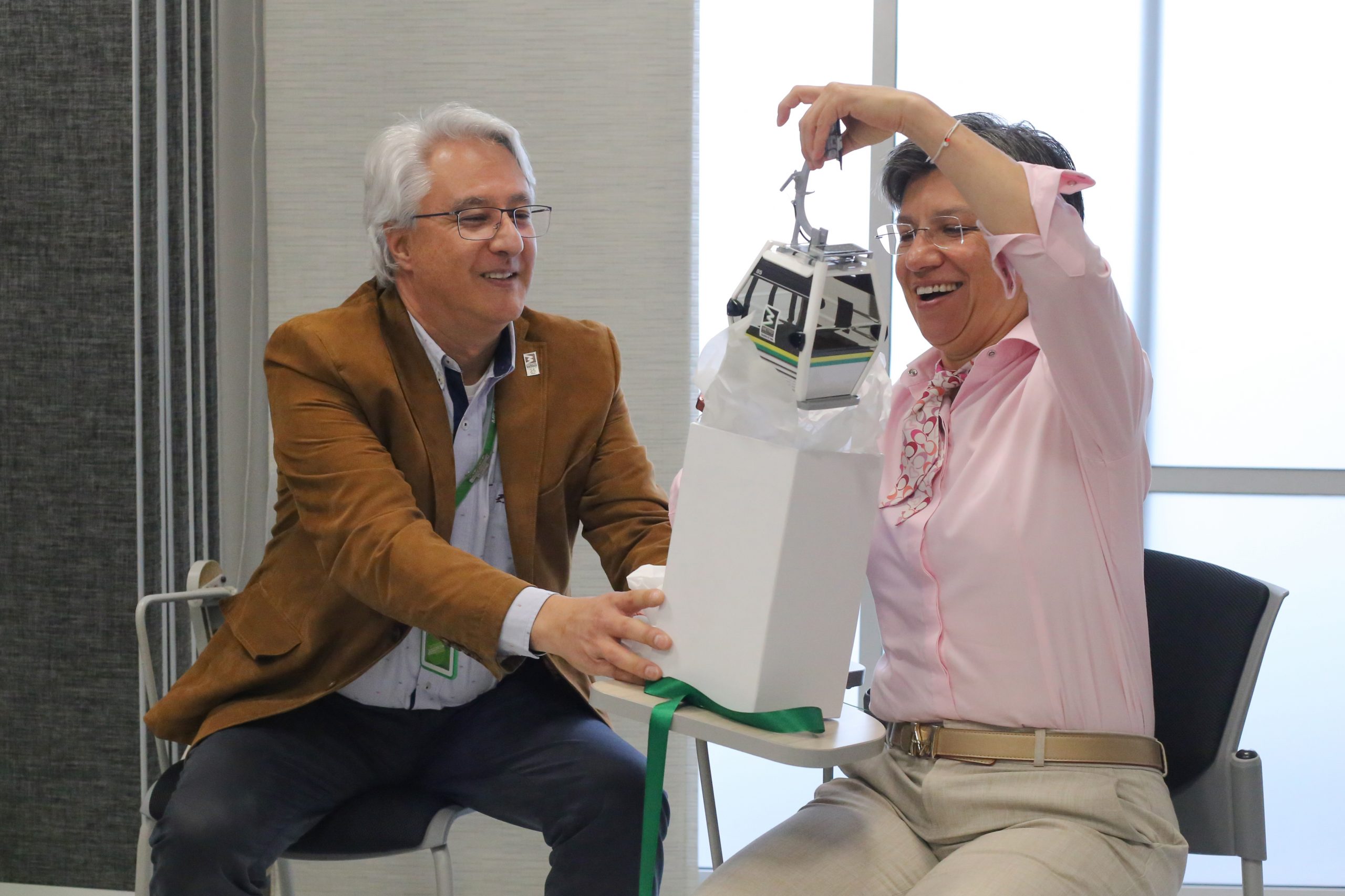 Y añadió, “construir un sistema multimodal de transporte, basado en Metro pero también en Regiotram, buses eléctricos, bicicletas, andenes; es parte de cumplir nuestra sostenibilidad ambiental, nuestra justicia social. Dos de cada tres usuarios del transporte público de Bogotá somos mujeres de manera que es equidad social, equidad ambiental y de eso estamos aprendiendo del Metro de Medellín”.